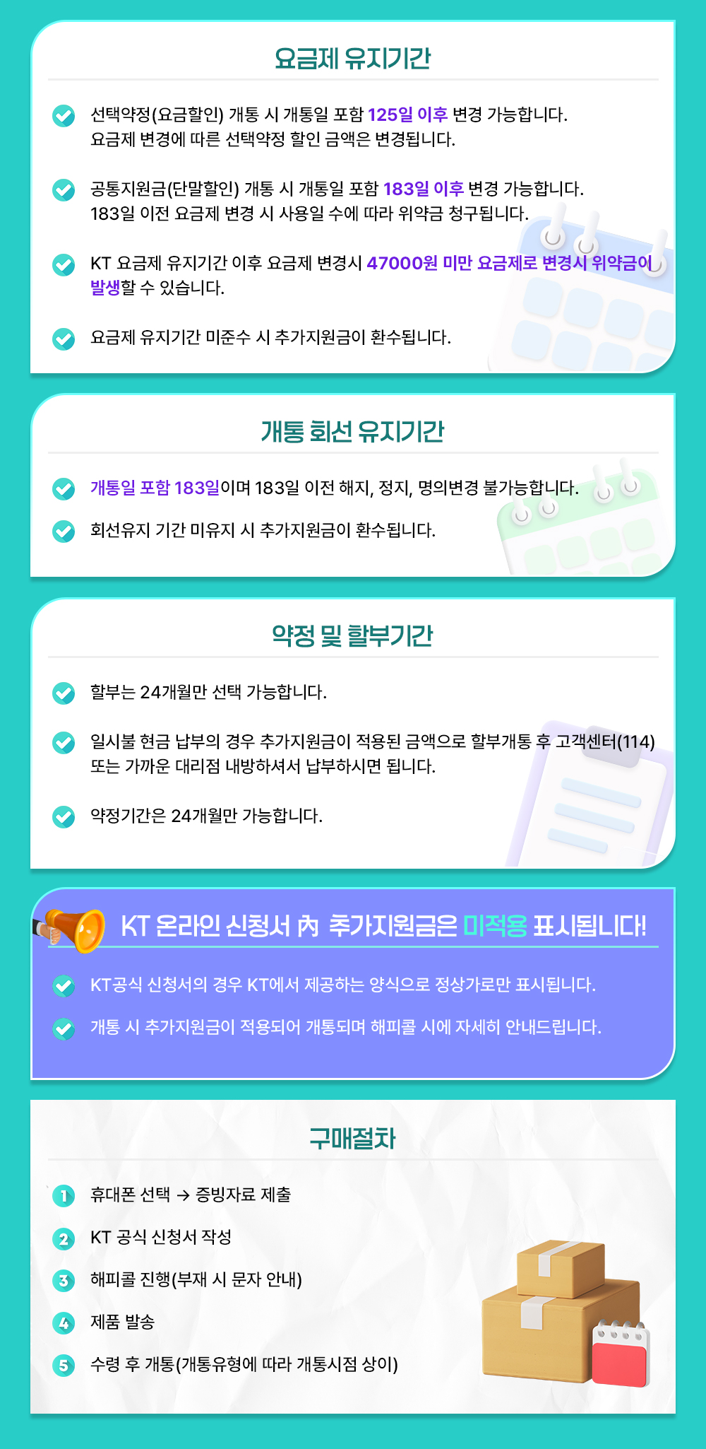 3. 단말 불량으로 인한 개통취소는 개통일로 부터 10일(D+9)까지만 가능합니다.